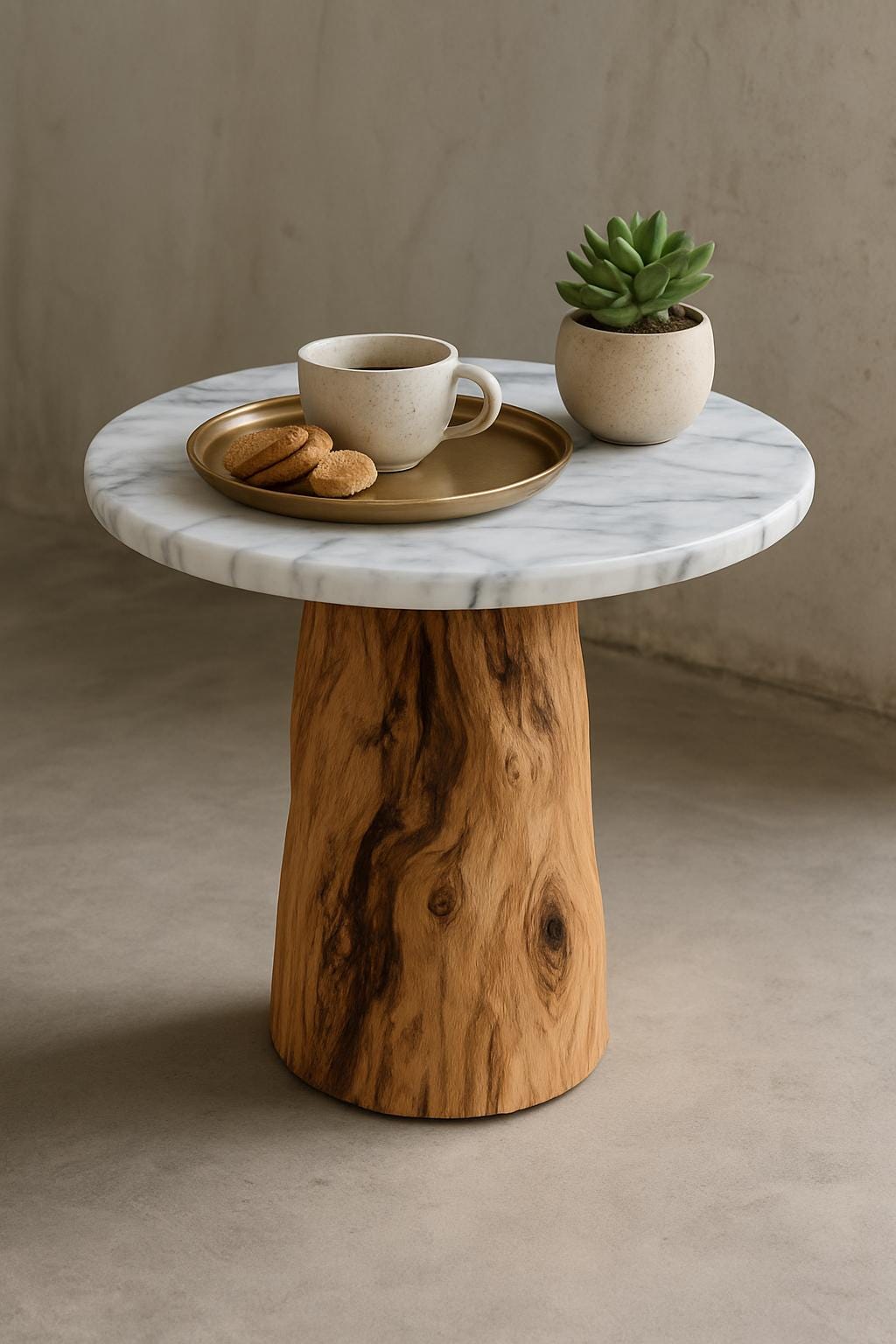 Handcrafted Wood Base: Each table stands on a solid natural wood base for stability and organic style.