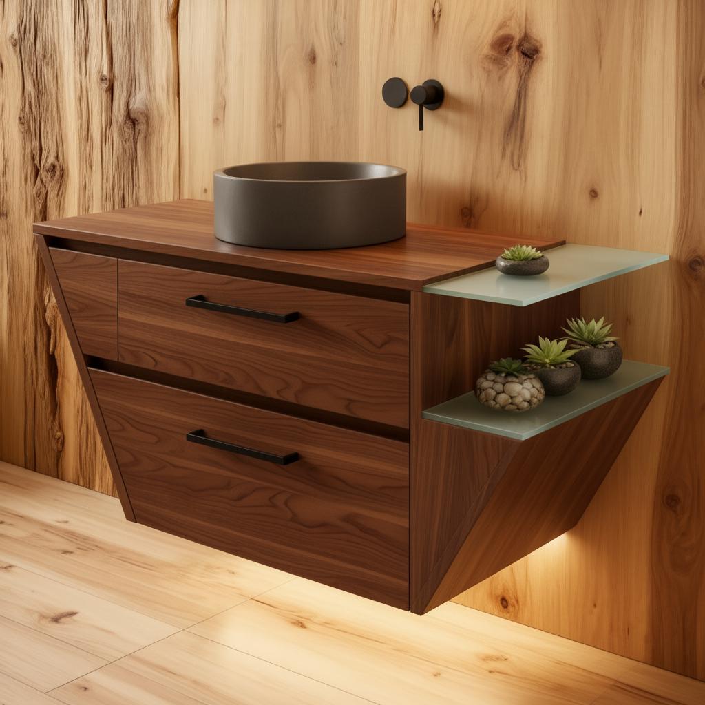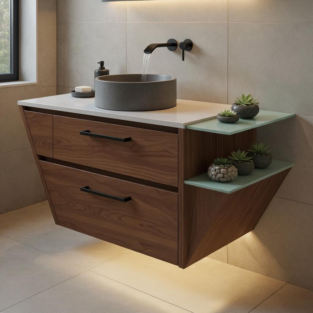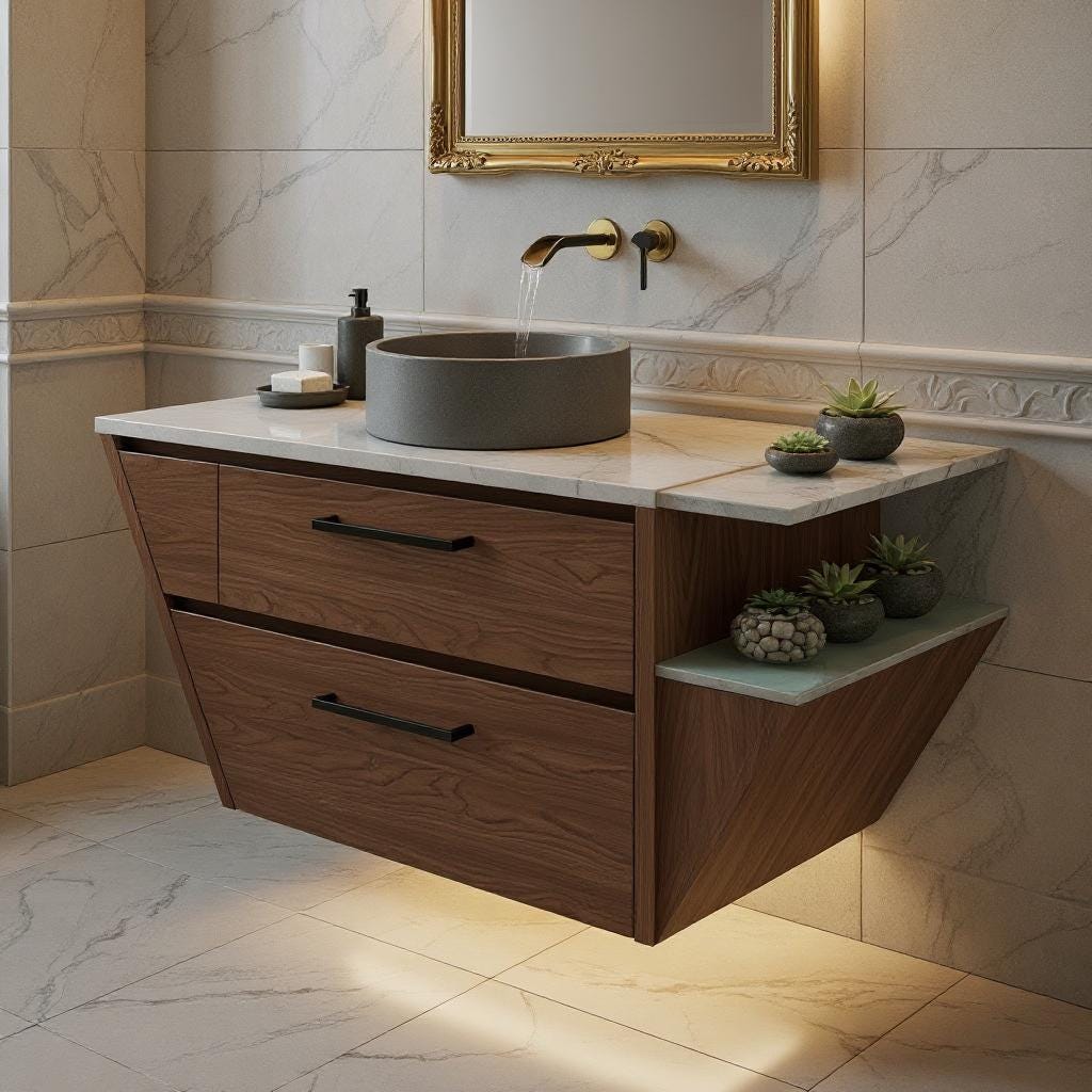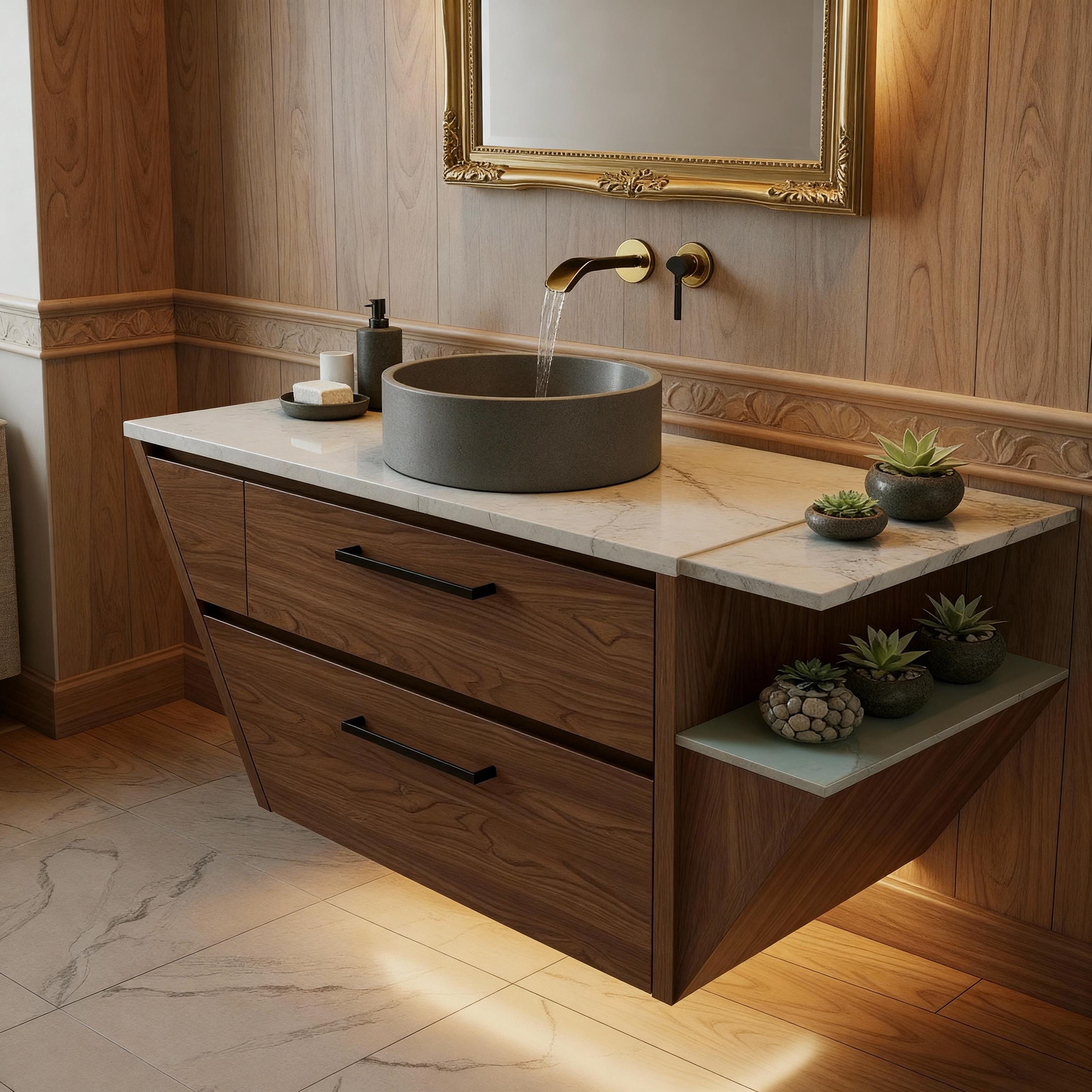 Introduce warm, modern craftsmanship to your bathroom with this handmade floating vanity by Marble Aura Design. Each piece is meticulously built from solid wood, including the countertop, for a clean, cohesive, natural look that feels both modern and timeless.