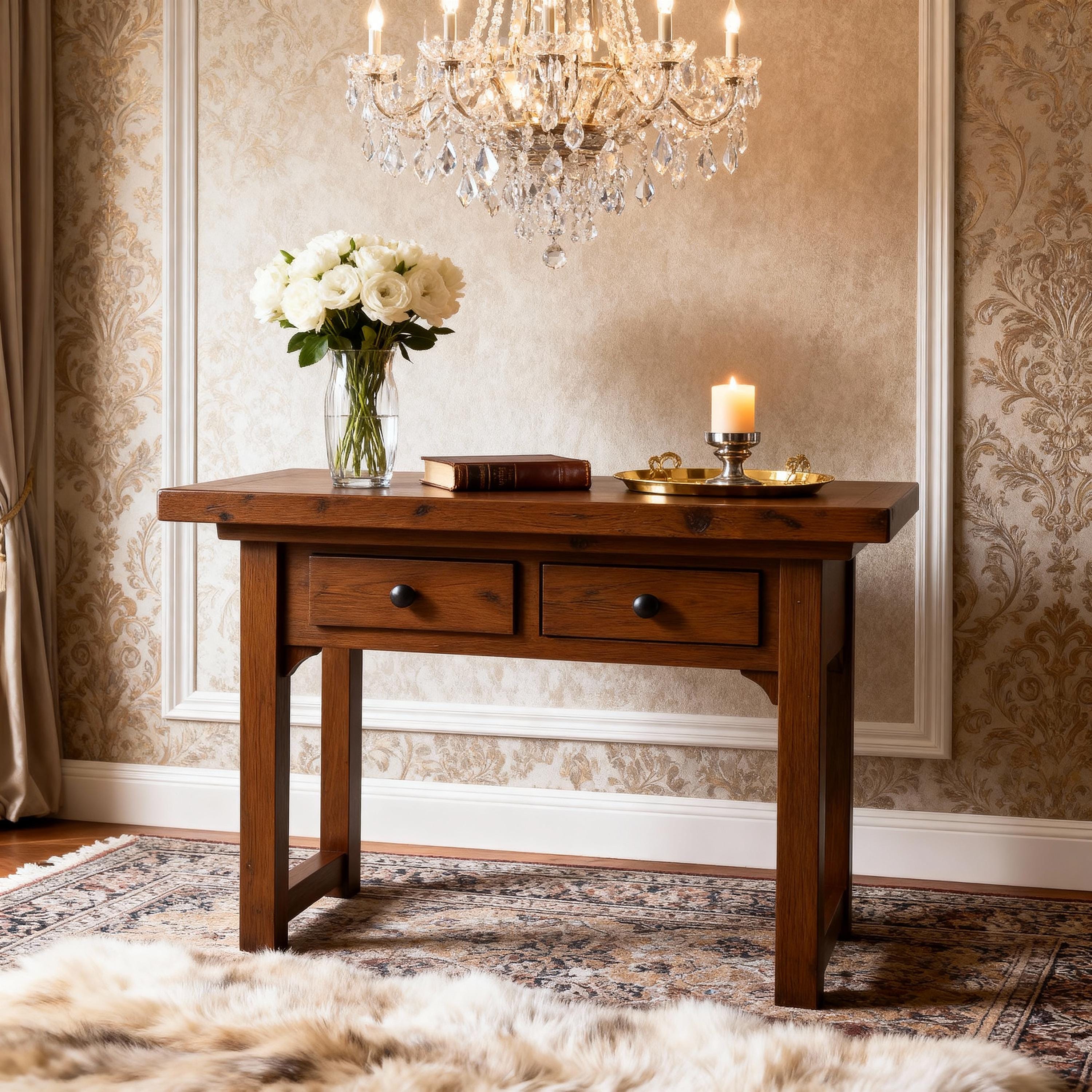 Handmade Vintage Console Table - Solid Wood Rustic Farmhouse Entryway & Hallway Table with 2 Drawers, Customizable