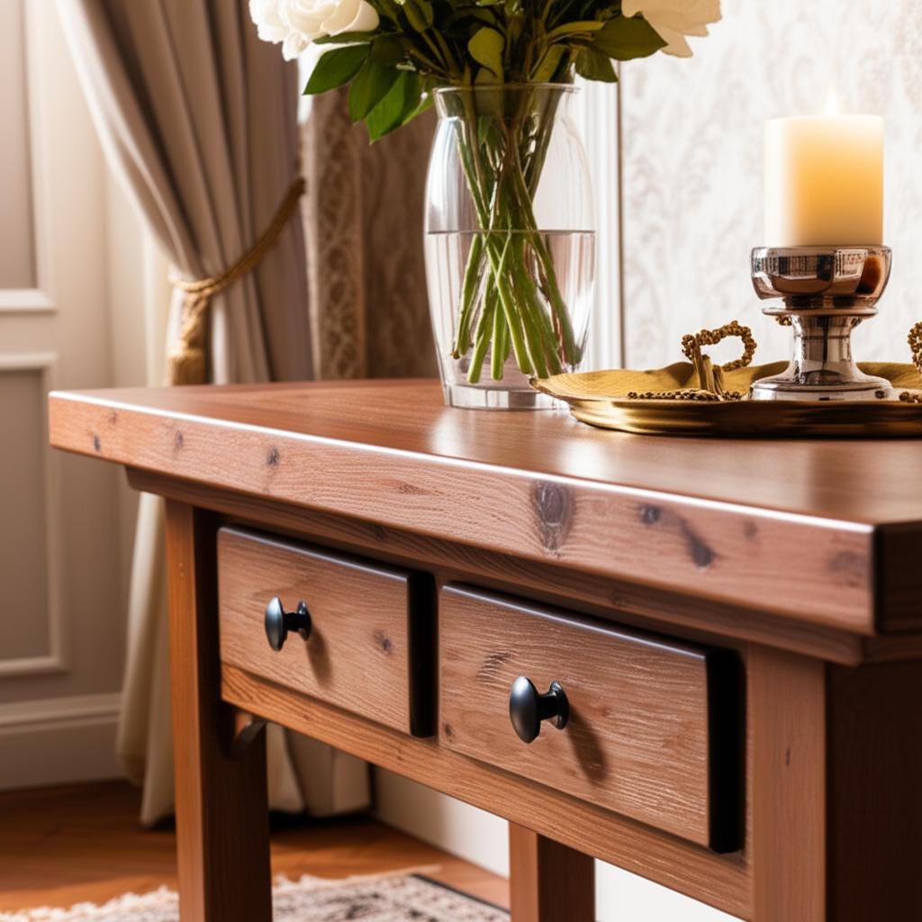 Its narrow profile is perfect for small spaces. It will “make the most of your hallway or entry” ideal behind a sofa, in an entryway or living room. The sturdy solid wood construction gives each table unique grain patterns and strength; one listing even notes it is “made from solid pine”, highlighting the natural beauty and durability of the wood.